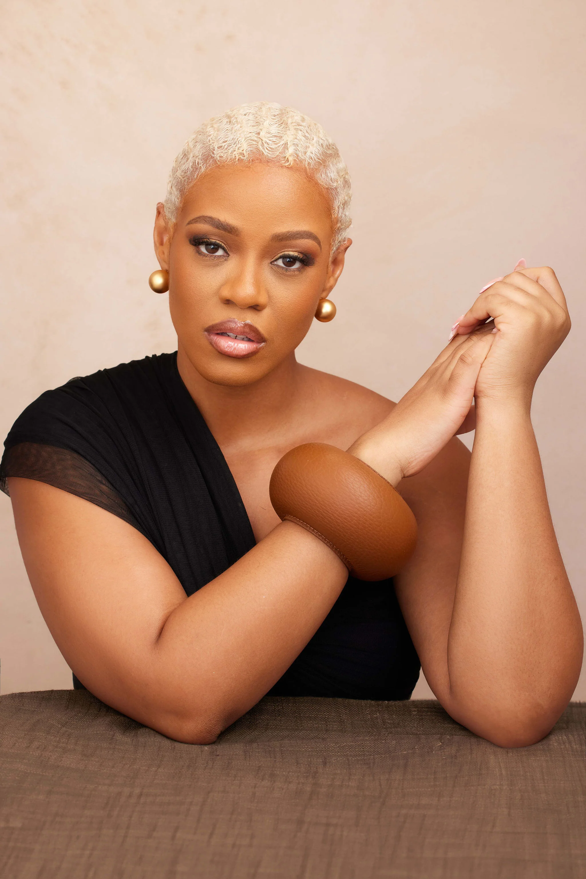 Theย BRYN bangle, an exquisitely crafted piece featuring vegan pebbled leather, intricately hand-stitched onto a solid wooden core. This high-quality leather, the same used in our renowned XILA bag, represents the pinnacle of our brand's craftsmanship. Each bangle is meticulously hand-stitched, showcasing our dedication to quality and attention to detail.