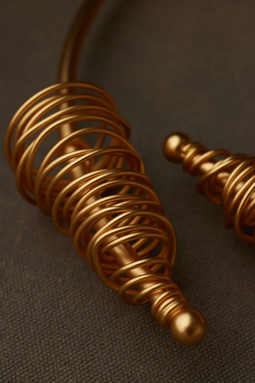 Inspired by our beloved ENYO Hoop and her sister AMAN earring, the ANYO (ahhn-yoh) necklace takes spirality to a new level. She features a hand spun and carefully crafted spiral wrapped around a C shaped structure that complements the neckline. She creates the signature spiral KHOI look. Her structural complexity does not compromise her functionality. She rests on the decolletage effortlessly while maintaining a lightweight feel.