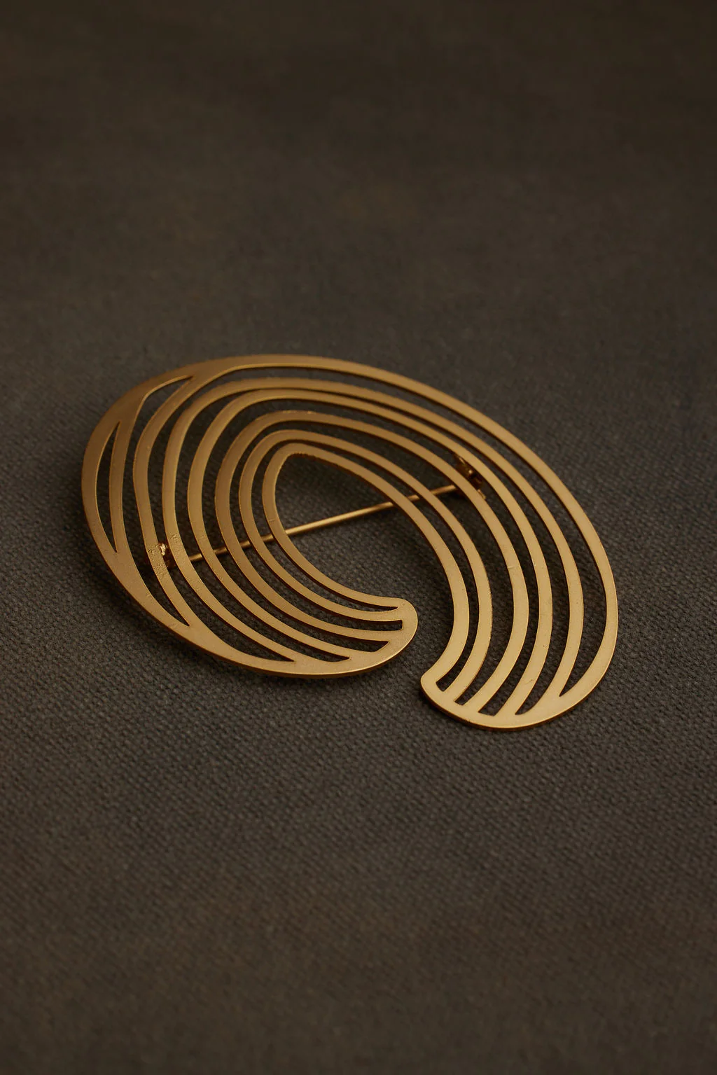 Our FOYE (foy-yah) brooch is full of fluid lines and sculptural form. She is a sophisticated statement piece that brings movement, texture, and refined artistry to any outfit. She features a swirl design with curves that flow seamlessly. Her asymmetrical design is a modern and innovative take on a classic design giving her the perfect edge.