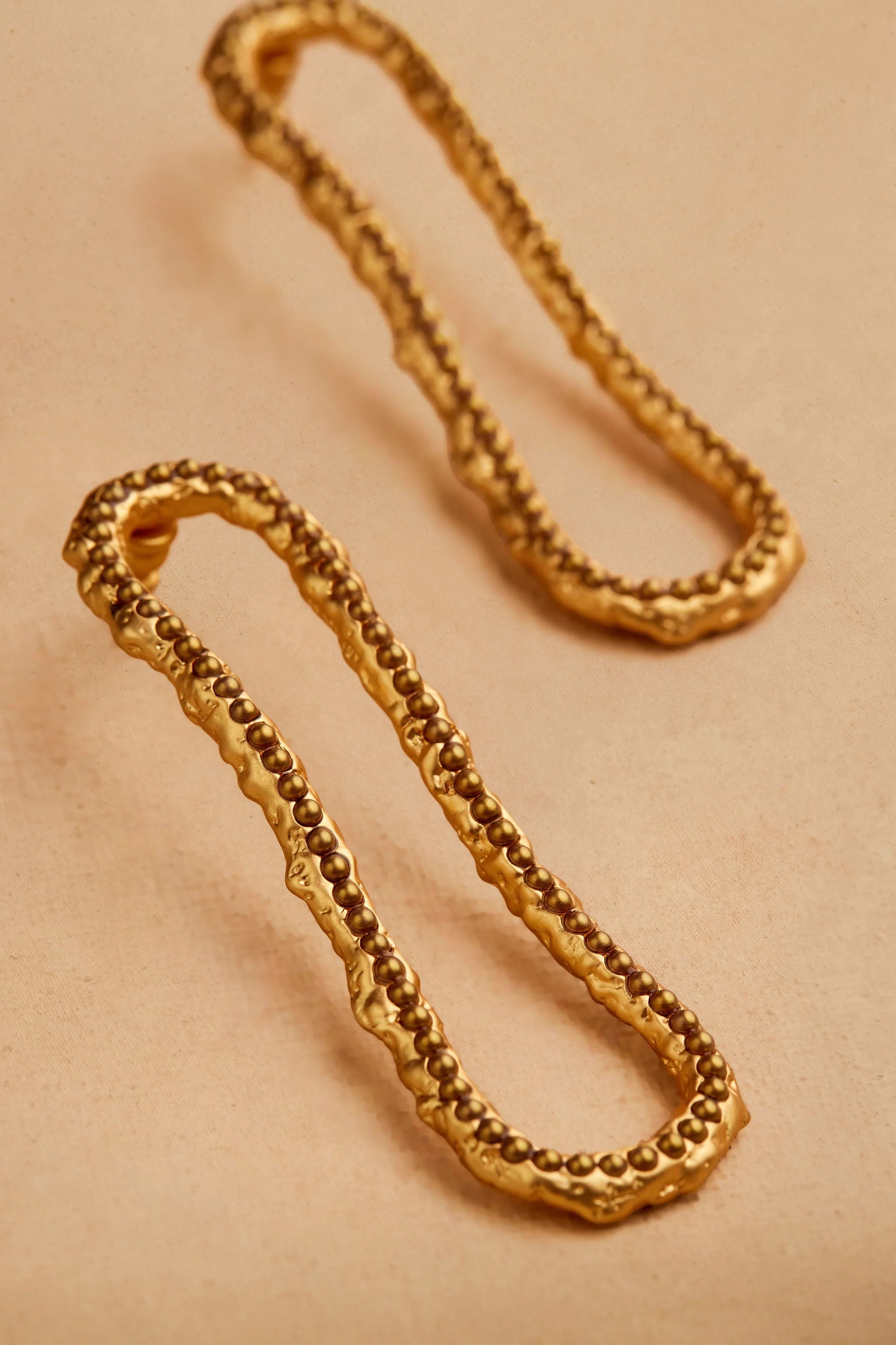 The LEOH earrings feature our new signature volcanic texture base with hand set glass chocolate colored pearls creating a unique pair every time.