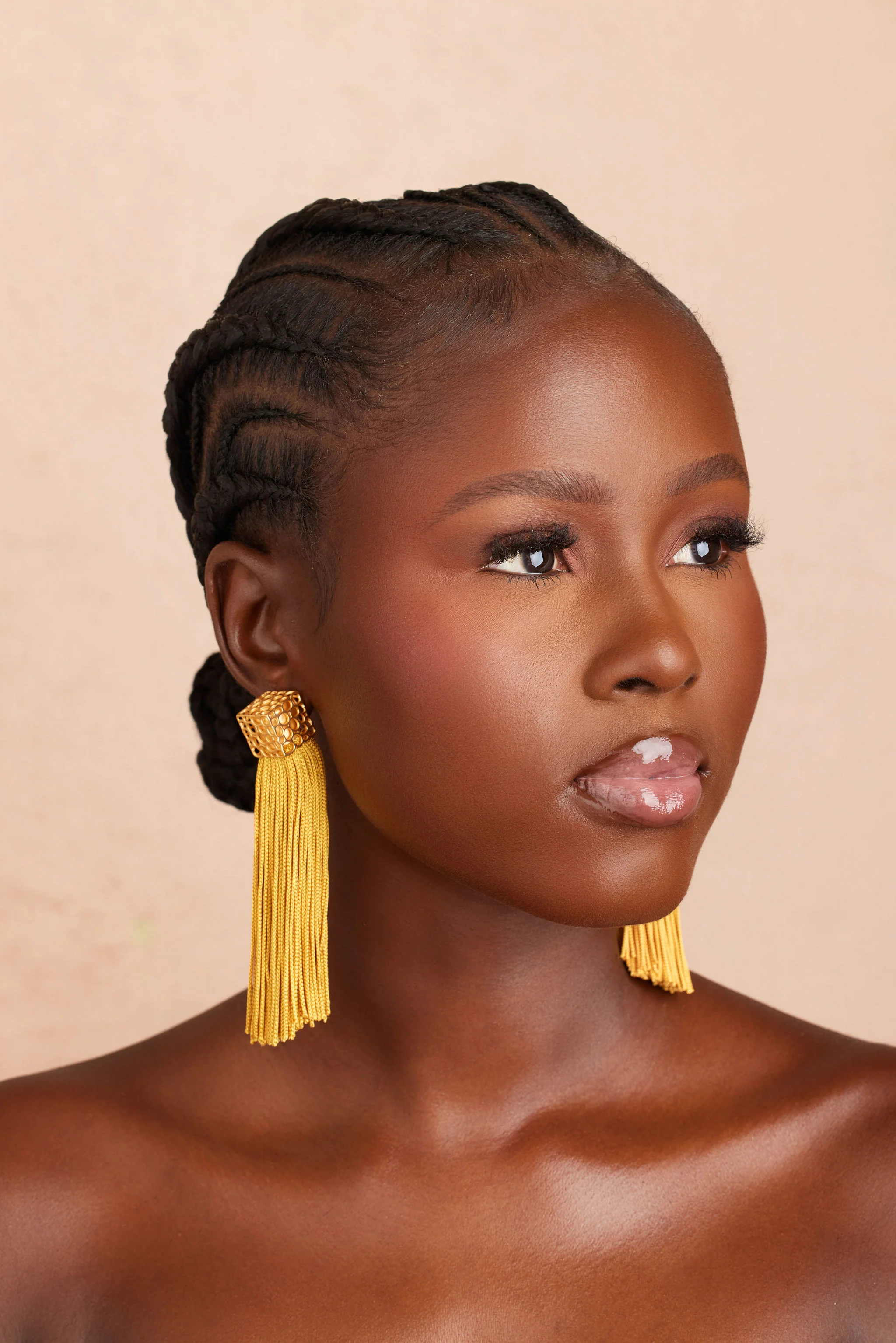 Our (TAZL) (taz-uhl) earring makes a bold yet graceful statement. She is where movement, texture, and sophistication come together in perfect harmony. Each earring is anchored by a beautifully crafted cube featuring our caged design. Attached to the cube are a series of cascading braided cords that flow and sway with every movement adding a touch of drama to every step.