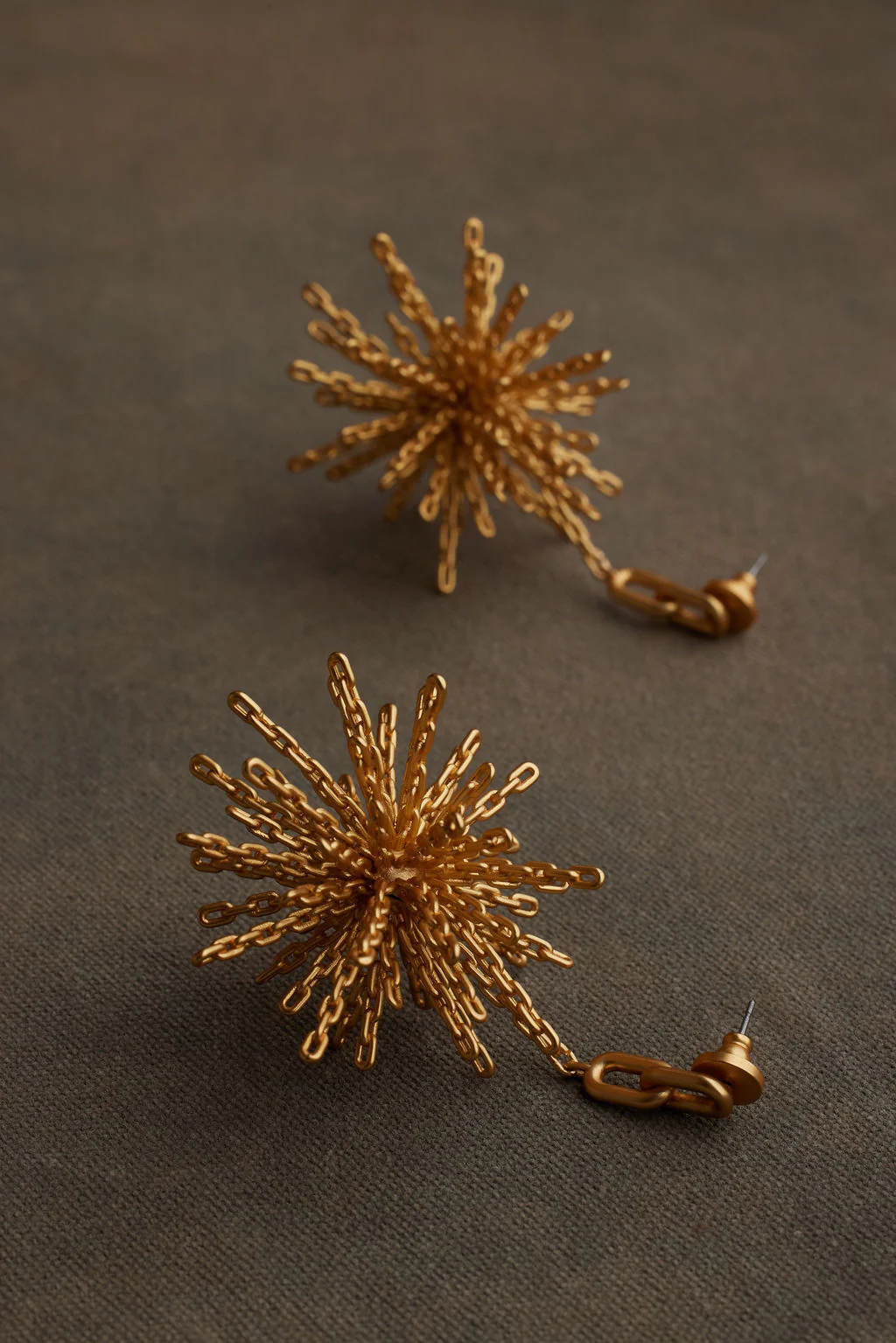 Theย TIYA (tee-yah) earring features a stunning starburst drop earring design. However, TIYA is more than meets the eye. Upon closer look, her design reveals itself. Her starburst shape is composed of an intricate chain detail. The intricacy of her pattern is mesmerizing and is carefully crafted to capture the miniscule details. TIYA is a testament to the diligent craftsmanship and architectural innovation of KHOI.
