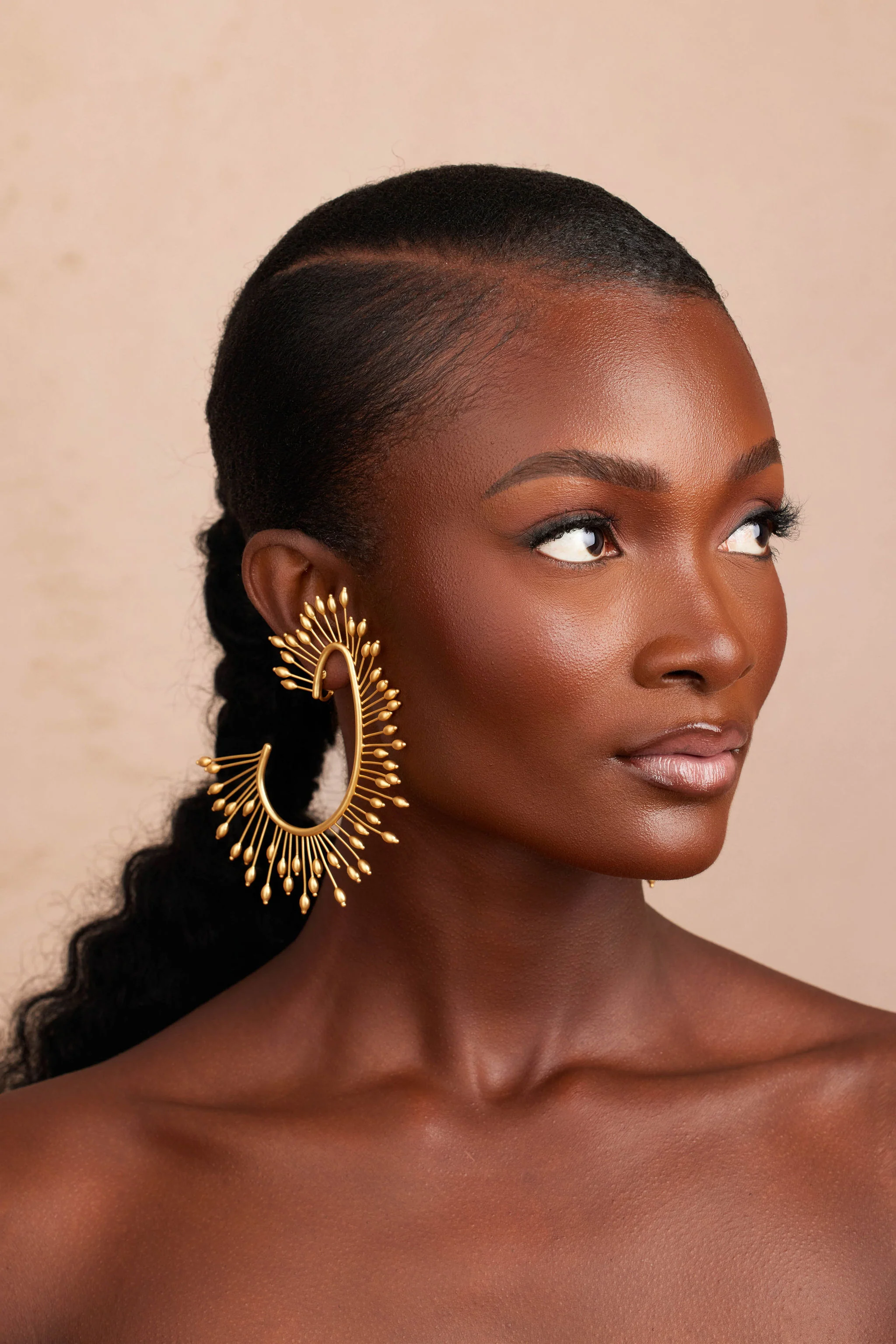 In addition to the traditional wear of an earring below the ear, JARI can also be worn similar to a cuff, cradling the top or the ear. Despite this unique look, JARI remains comfortable and snug to the ear. She is a stunning elegant piece.